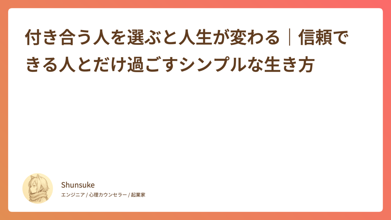 付き合う人を選ぶと人生が変わる|信頼できる人とだけ過ごすシンプルな生き方