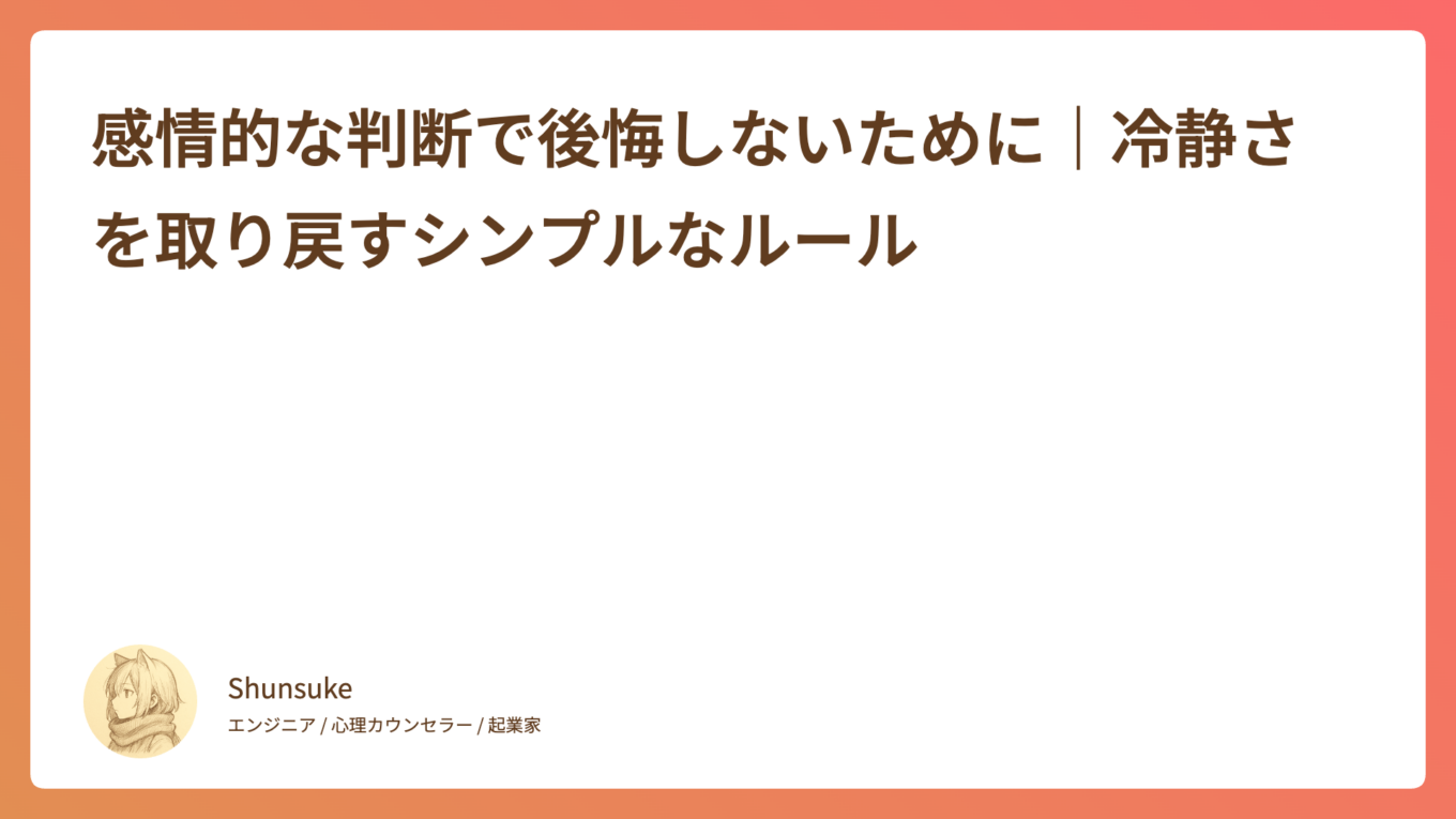 感情的な判断で後悔しないために|冷静さを取り戻すシンプルなルール