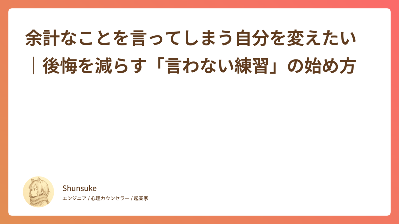 余計なことを言ってしまう自分を変えたい|後悔を減らす「言わない練習」の始め方