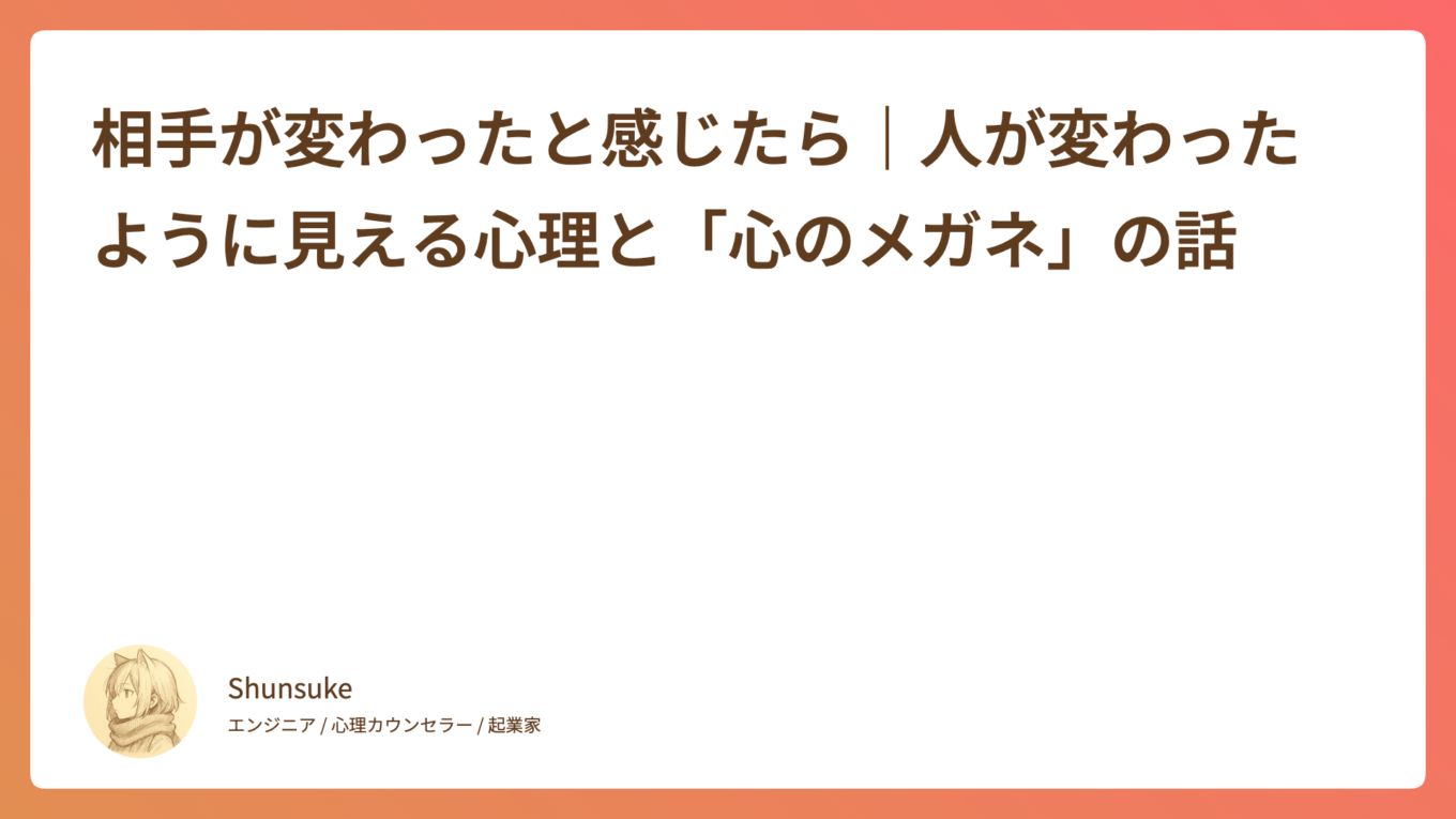 相手が変わったと感じたら|人が変わったように見える心理と「心のメガネ」の話