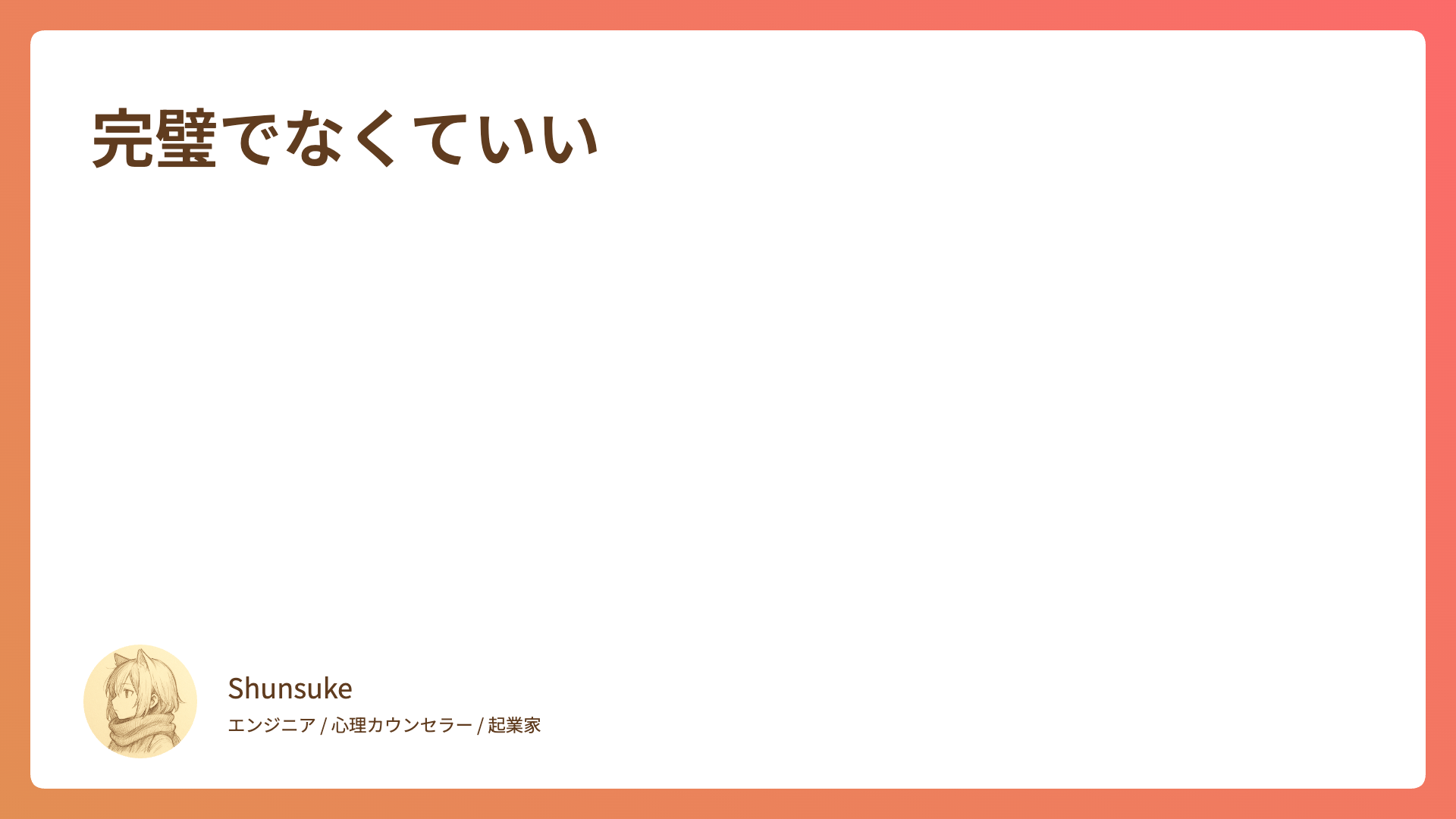 でも、「完璧でなければならない」と思い込んでしまうと、少しのミスも許せなくなってしまいます。