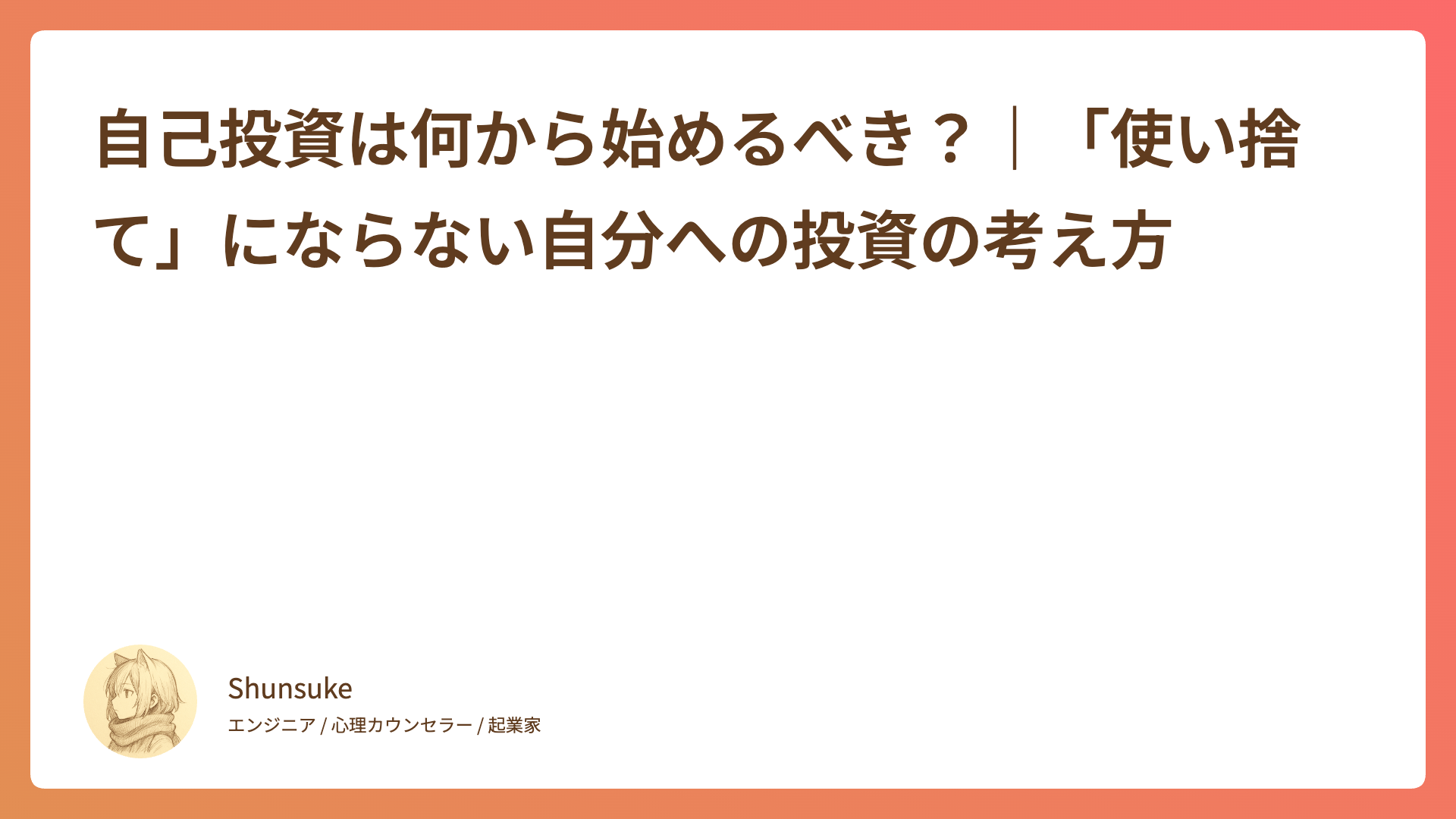 この記事では、一時的で終わらない「長く使える自己投資」の考え方についてお話しします。