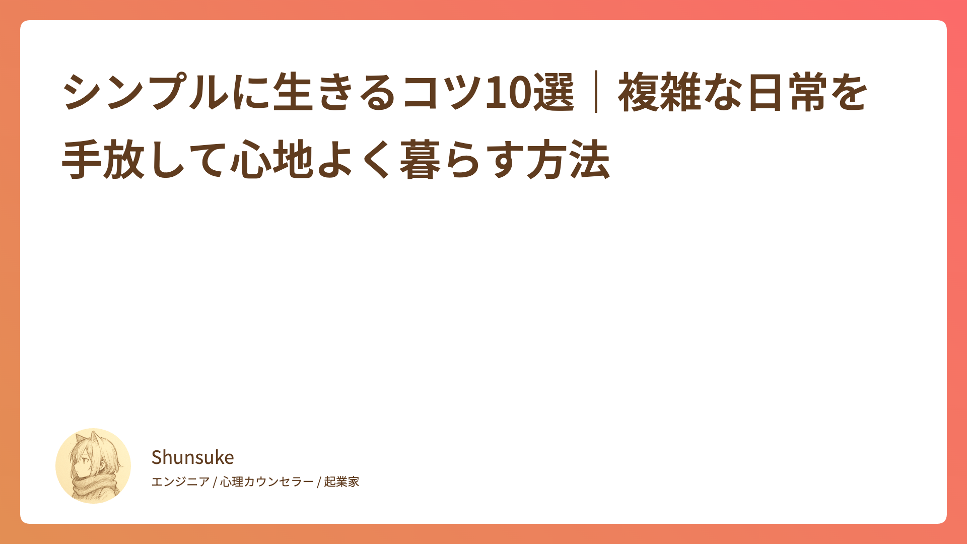 この記事では、シンプルに生きるための10のコツをご紹介しました。